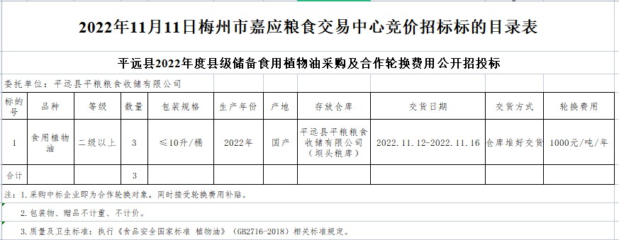 平遠(yuǎn)縣2022年度縣級(jí)儲(chǔ)備食用植物油采購(gòu)及合作輪換費(fèi)用公開招投標(biāo)公告