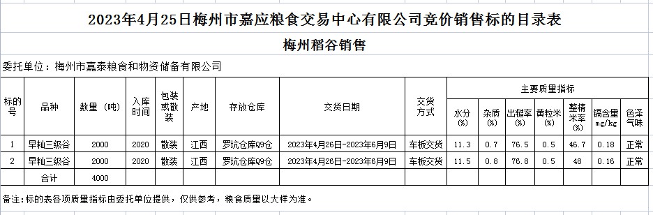 受客戶委托,梅州市嘉應(yīng)糧食交易中心有限公司定于2023年4月25日(星期二)舉辦糧食競價交易會。梅州市嘉泰糧食和物資儲備有限公司擬銷售2020年早秈稻4000噸。